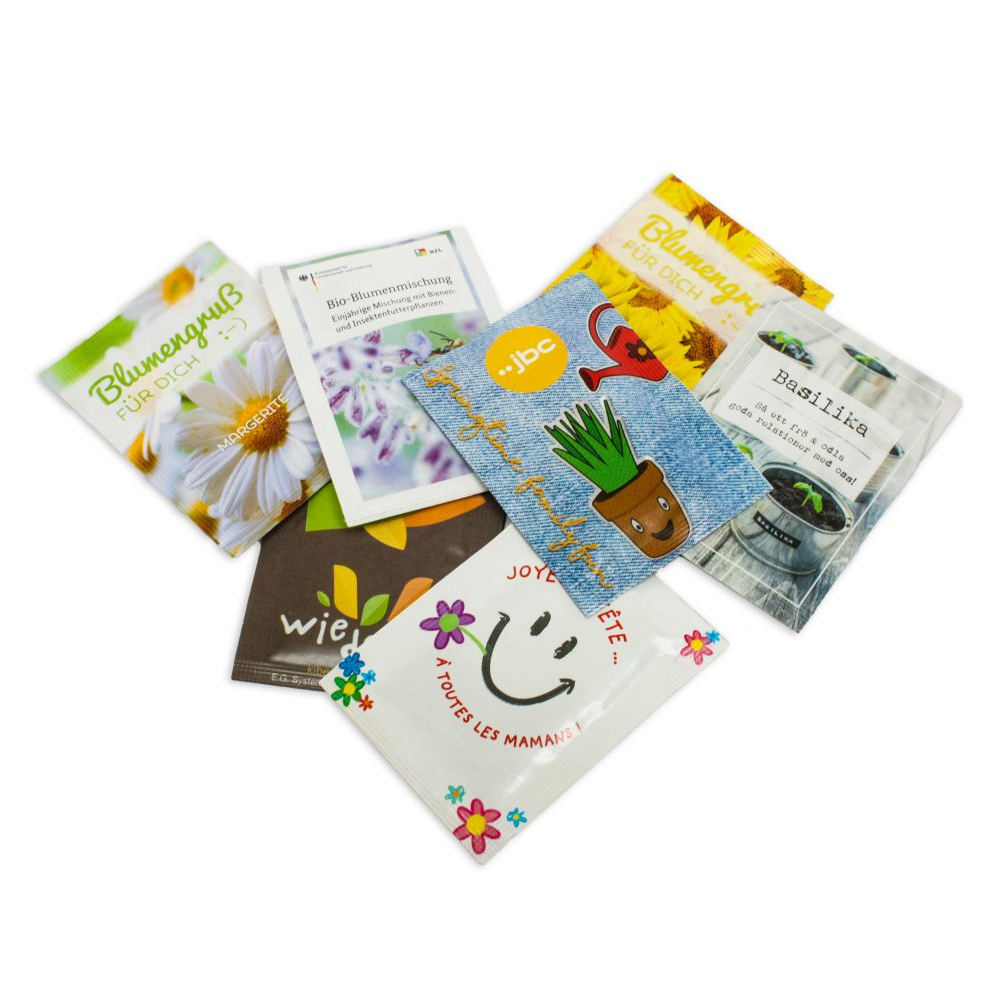 Förutom standardstorlekar erbjuder vi även kundanpassade lösningar, till exempel sortiment med private label, fröpåsar med unika nummer för tävlingar eller snabb leverans av standardtyper. Därför fungerar en fröpåse med eget tryck lika bra för kampanjer som för profilprodukter vid kundevent.