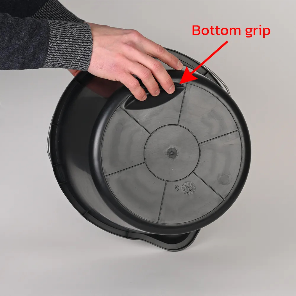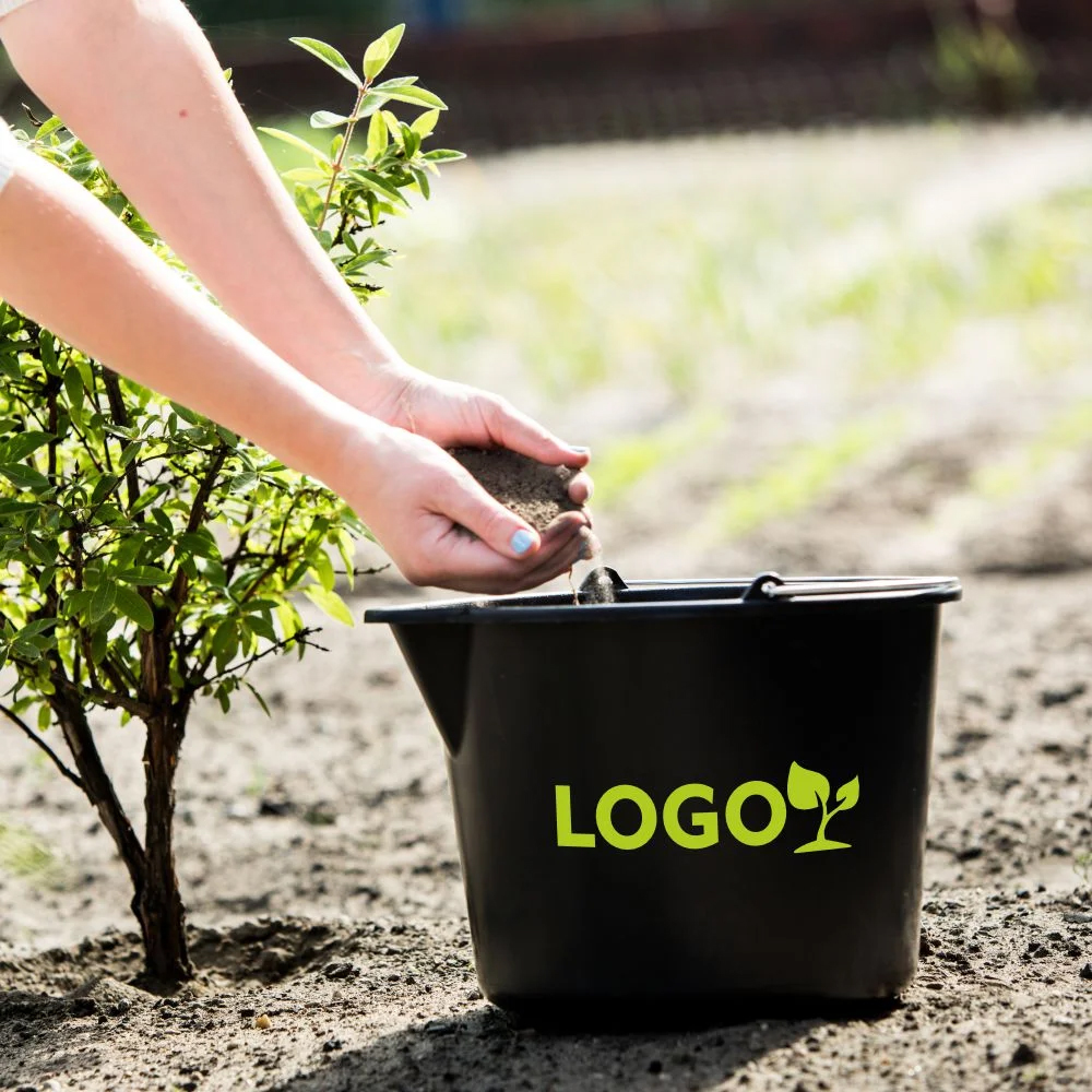 Spillfri Hink med logo i polypropylen.12 lit. Hinkarna har en praktisk form som minskar spill. Dessa starka hinkar passar för bygg- och trädgårdsarbete. Det galvaniserade trådhantaget ger ett bra grepp. Inuti hinken finns en gradering i liter.